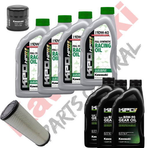 Kawasaki Genuine PartsKit Includes: -KPO HP Full-Synthetic 5W-40 ATV/UTV Oil (4 Quarts)-Genuine Kawasaki Oil Filter-Drain Bolt Sealing Washer-One Pair Disposable Gloves-...